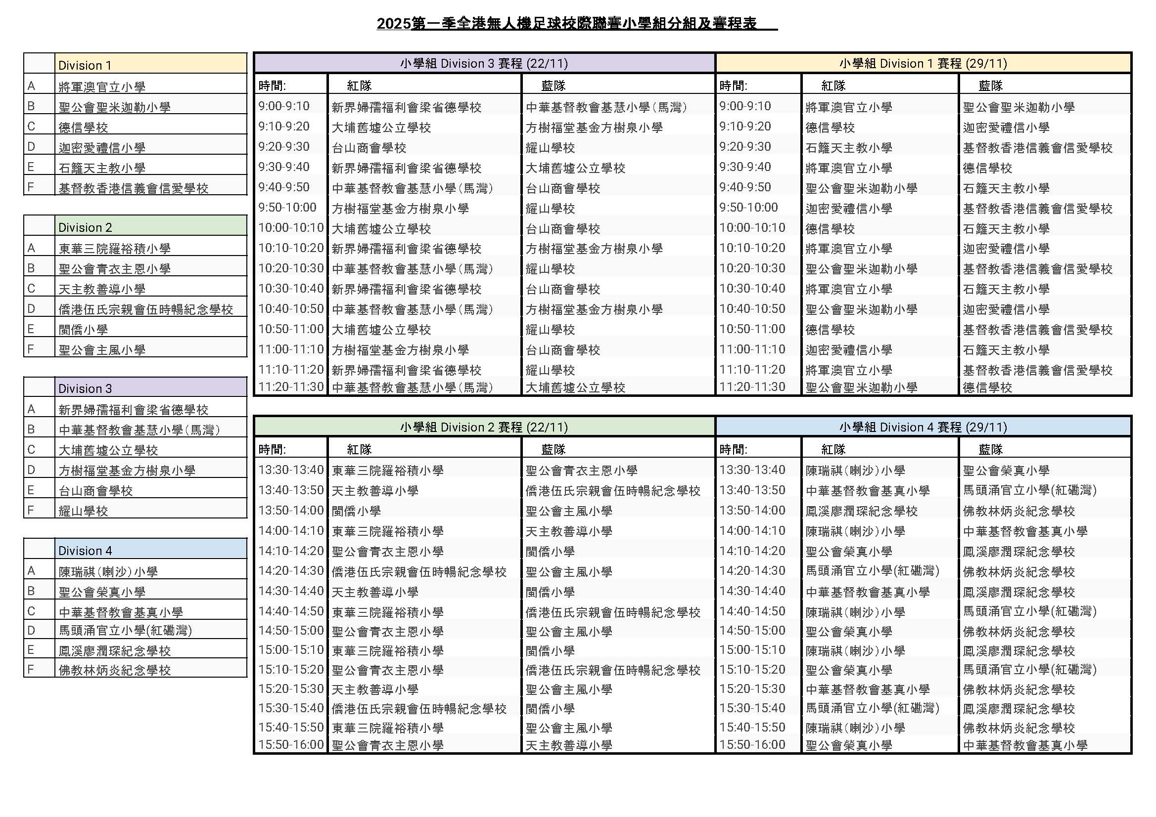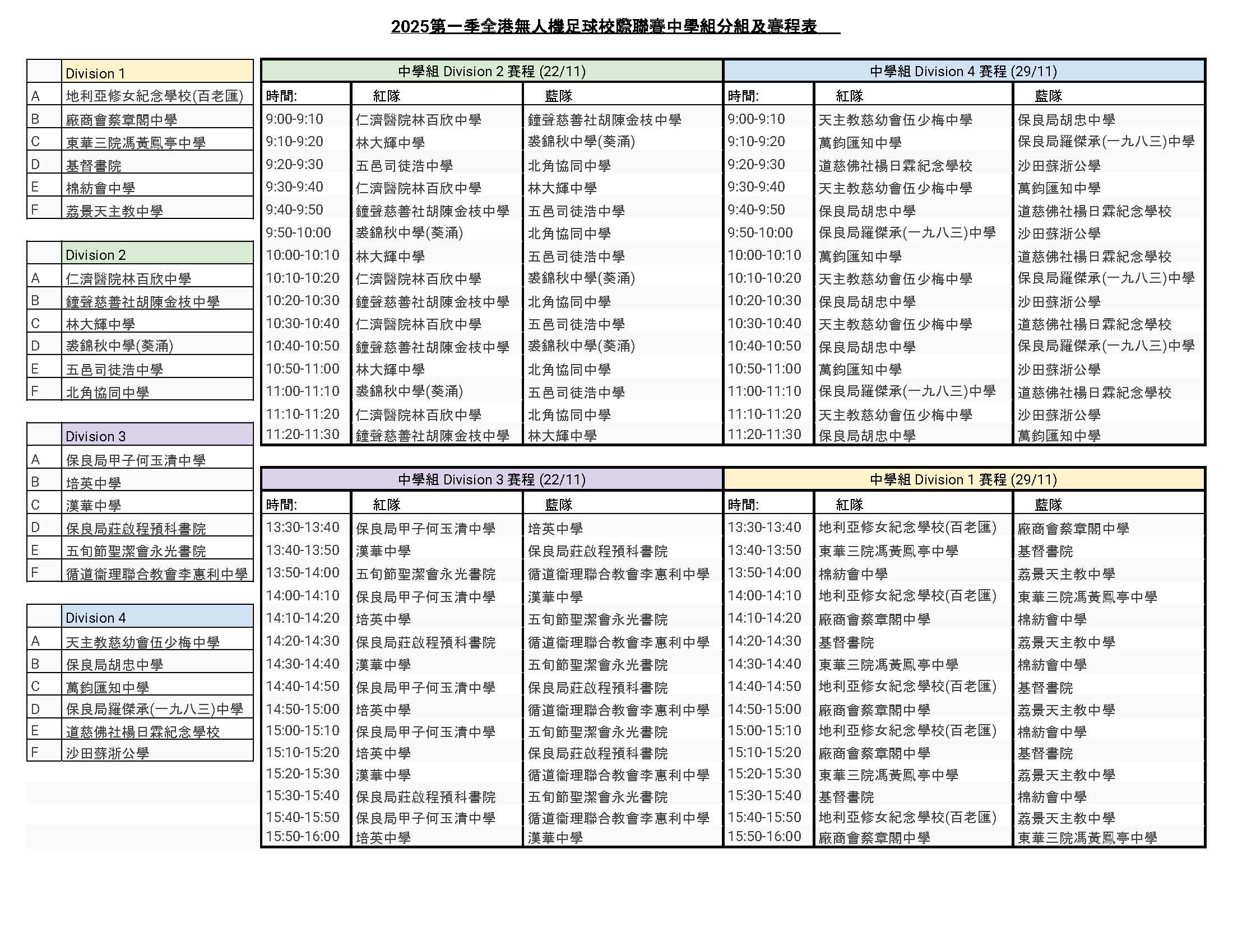全港無人機足球校際聯賽分組及賽程表